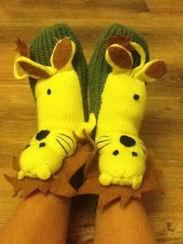 Aren’t they just the stupidest things you’ve ever seen? How can you be in a bad mood with ridiculous stuffed lions or alligators on your feet? How great is it that the lions have bellybuttons?They are warm, too. I’ll have to protect them from Lokii the fabric-eater, but I think they need to come out of the drawer and smile smarmily up at me this winter.