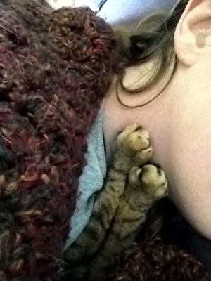 Spotty’s little feet on my neck as we nap on the couch. He always makes an effort and stretches out to put his feet on my face when he’s happy, warm, comfortable and sleepy. How I love him so.