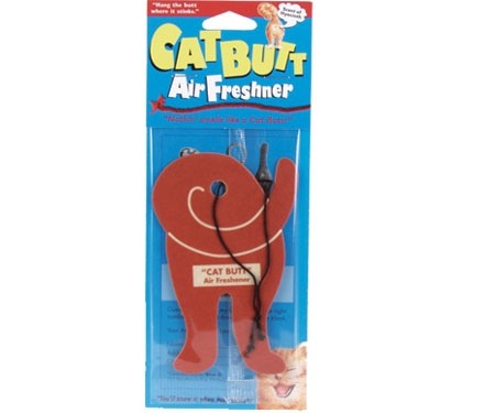 Catbutt air fresheners! Yeah, I know. Supposedly it smells of gardenias. I don’t know what the manufacturer’s cat eats, but I surely don’t smell flowers when gifted with a cat-arse in my face.
