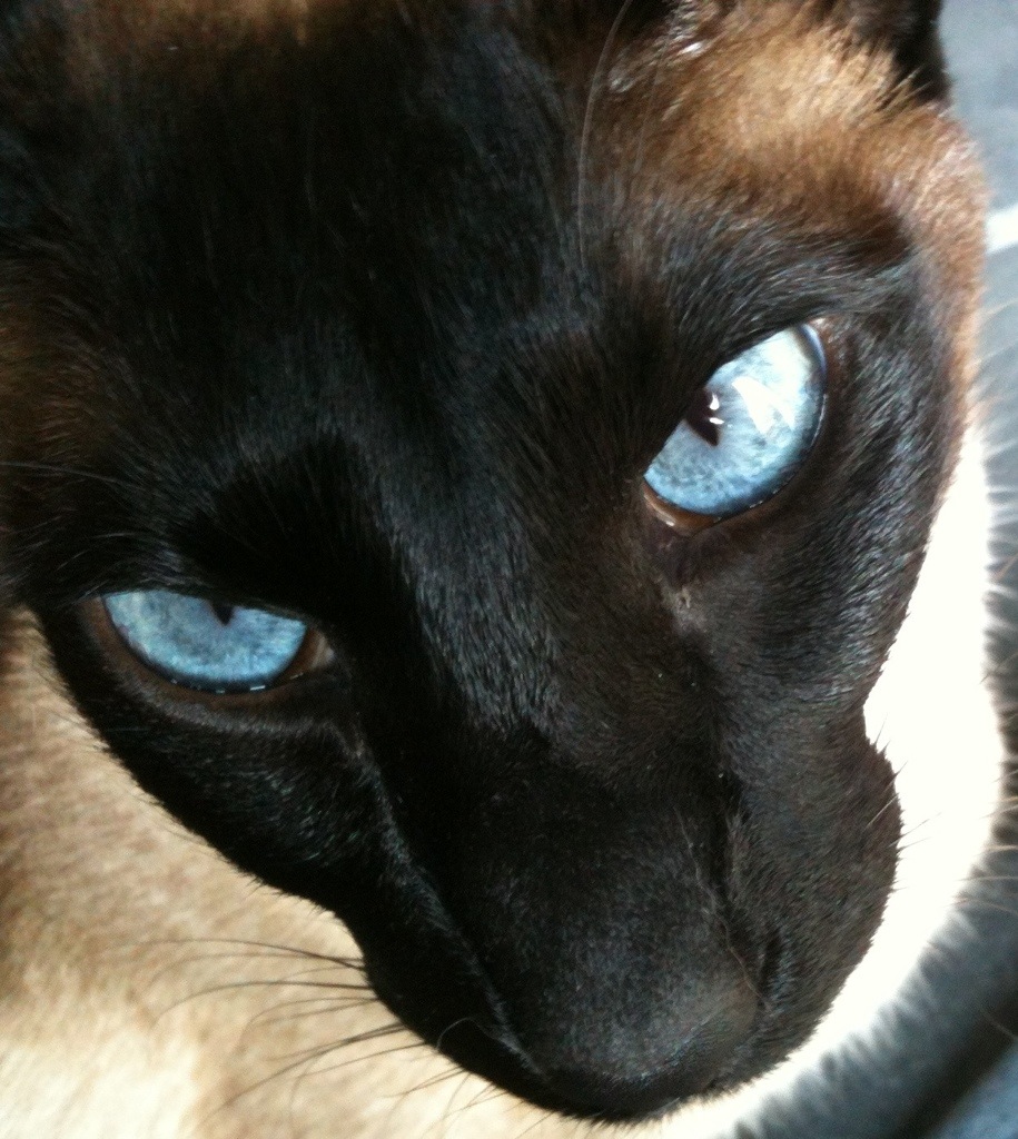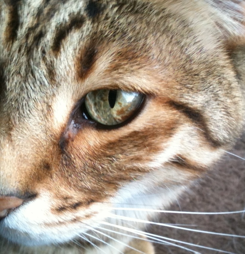 Spot was begging me to turn on the bathroom tap yesterday, so he could have a drink. From my seat (ahem) I told him that I didn’t intend to be in the room that long, so I wasn’t going to oblige him. Being as he doesn’t understand English, he just stared at me. As he tried to convince me using all of his feline wiles – more staring – I noticed his eyes were a most unusual colour.