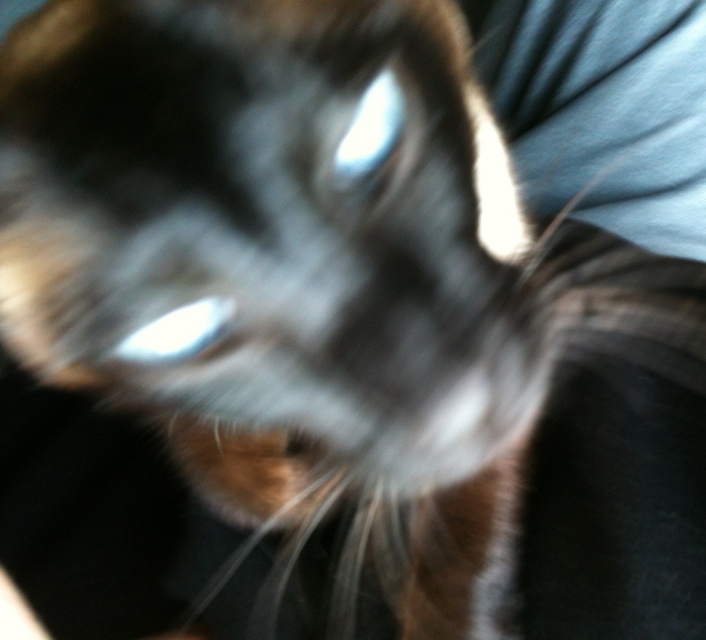 It’s pretty hard to take photos of a cat who is only interested in a drink, so we left the bathroom and I grabbed my iPhone and chased him around the house until he settled by the back door. His eyes were still that odd marbled shade, like agate.