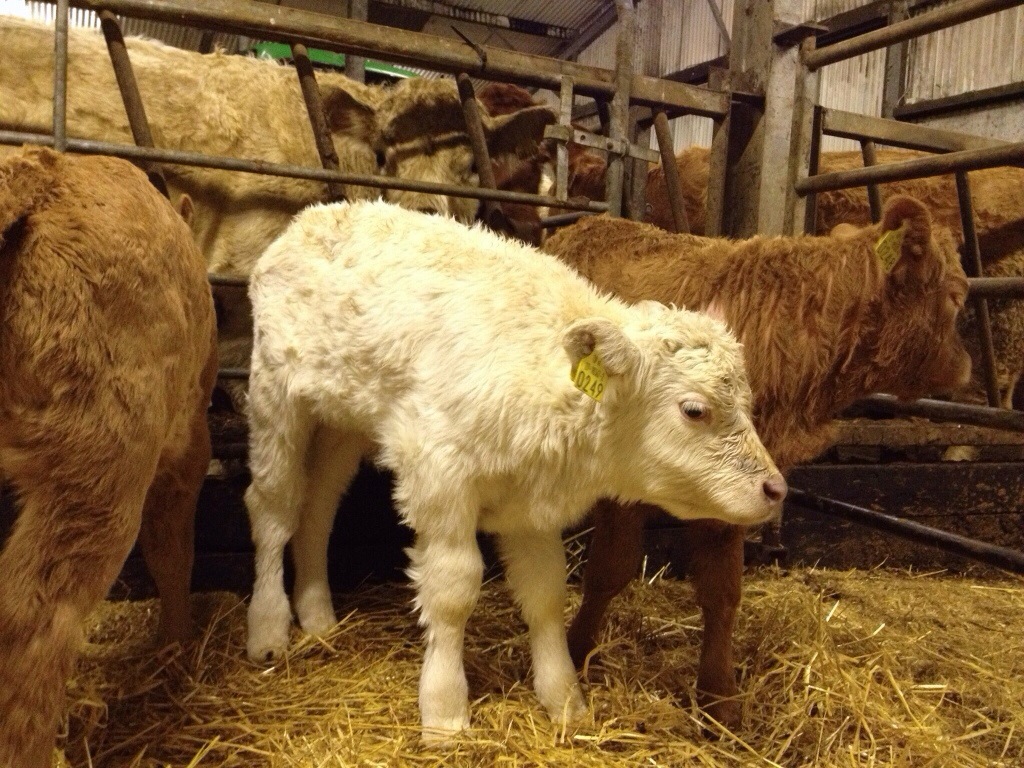 These cattle are a cross between charolais and limosin cattle. Maybe a few of my farming friends can enlighten me on the breed characteristics, or how the cross is meant to be? Because except for Trumpet, they were all calm and quiet, even with having the surprise of a stranger in their barn touching their babies. Murty the bull was right there in a pen with a few of the girls, not a bother to anyone, and barely glanced at me. Of course I will put a lot of their temperament down to their caretaker, who never hits or prods them, and spends all of his day (and sometimes all of his night) with them.