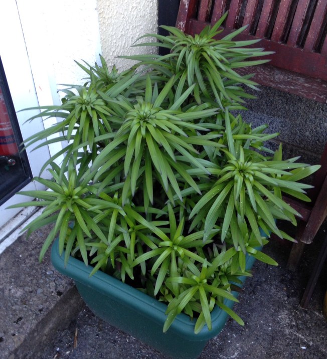 I don’t have blooms on anything but dandelions at the moment, but the lilies out back have gotten a lot larger since I last shared a picture.