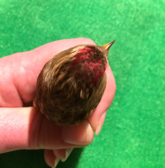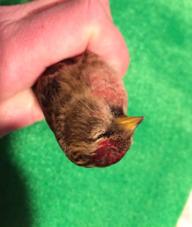 Again I was at at work, but this time out the front of the building – right outside the main doors, actually. Which is a large glass-fronted lobby. I’m still doubtful that Mr Redpoll was injured from flying into the glass, as it was dark out.