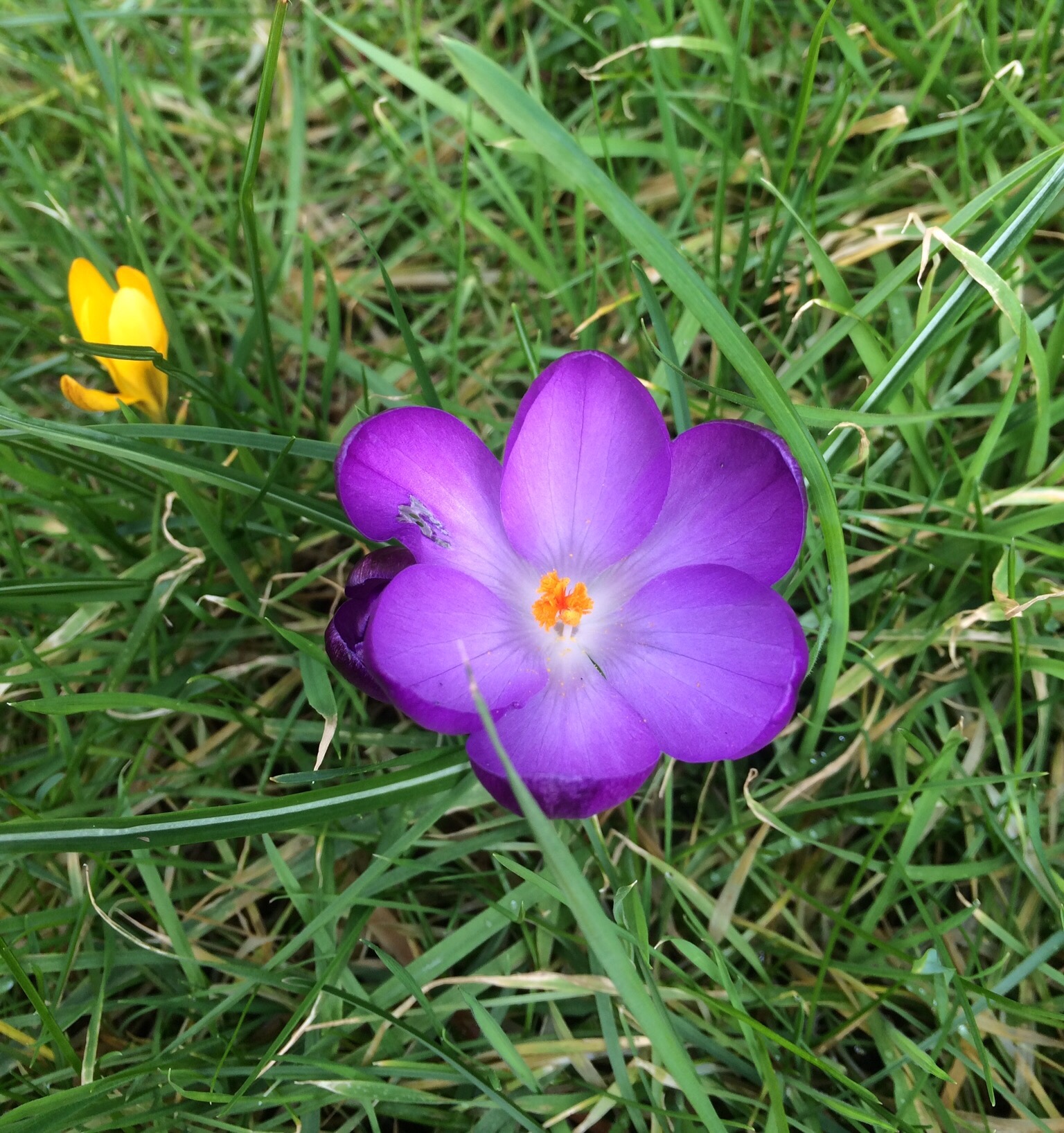 Next up was the crocus, which I kinda half-arsedly stuck in the grass patch out front a few years back. They come up half-arsedly, too.