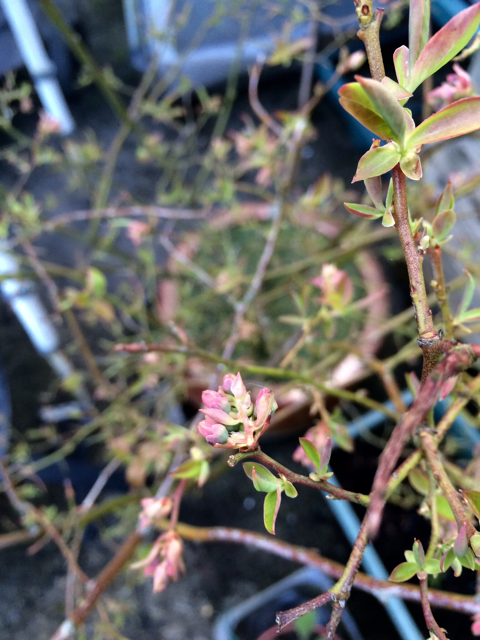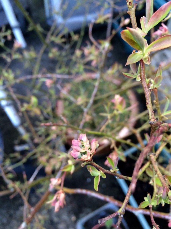 Glad to see the best of my three blueberry bushes is making flowers, too – by next weekend I should have some happy bees sampling them.