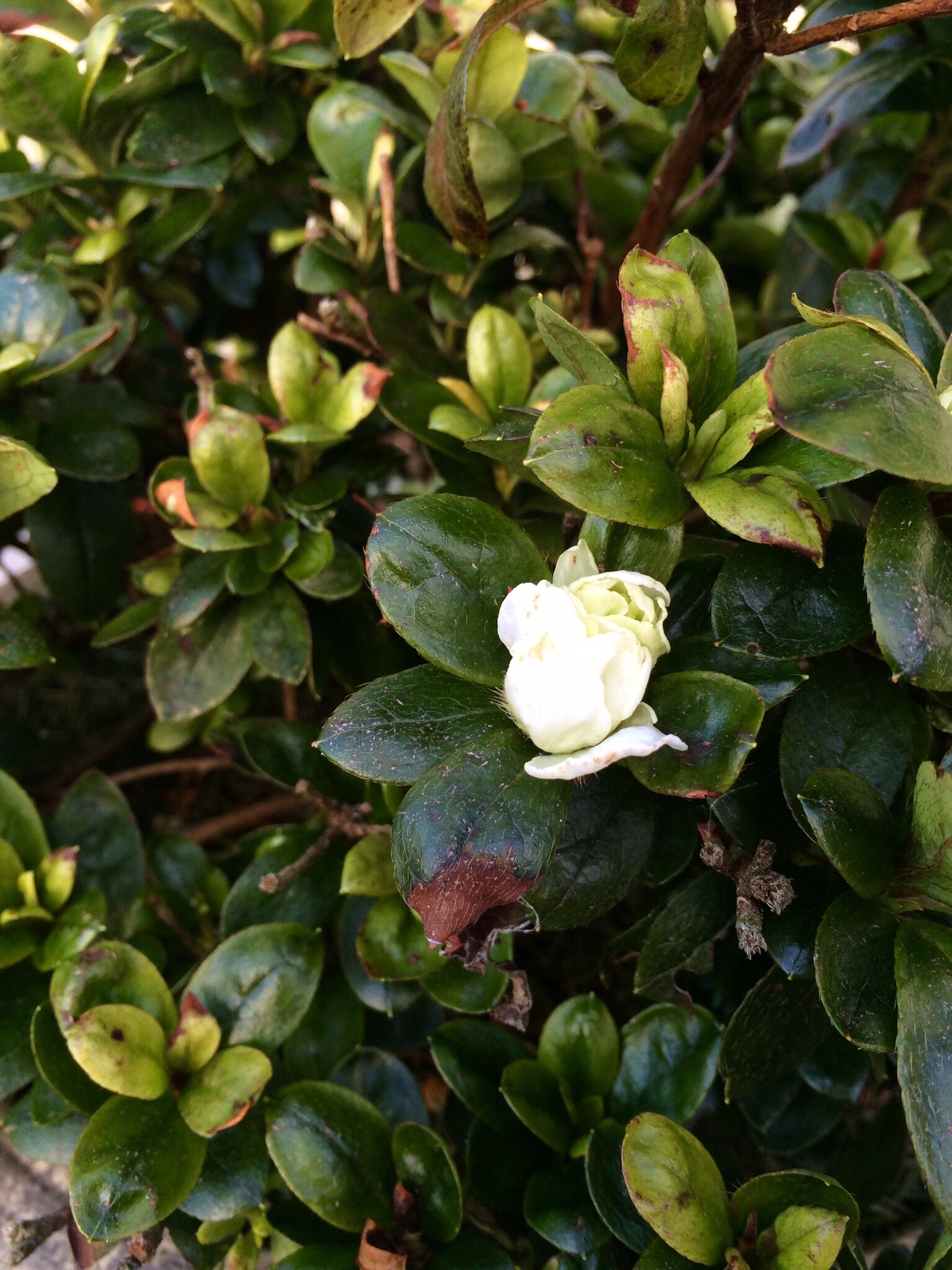 Not the healthiest looking thing, is it? Weird furry leaves, too – can’t blame that on the dog. At least is it blooming at the right time, finally.