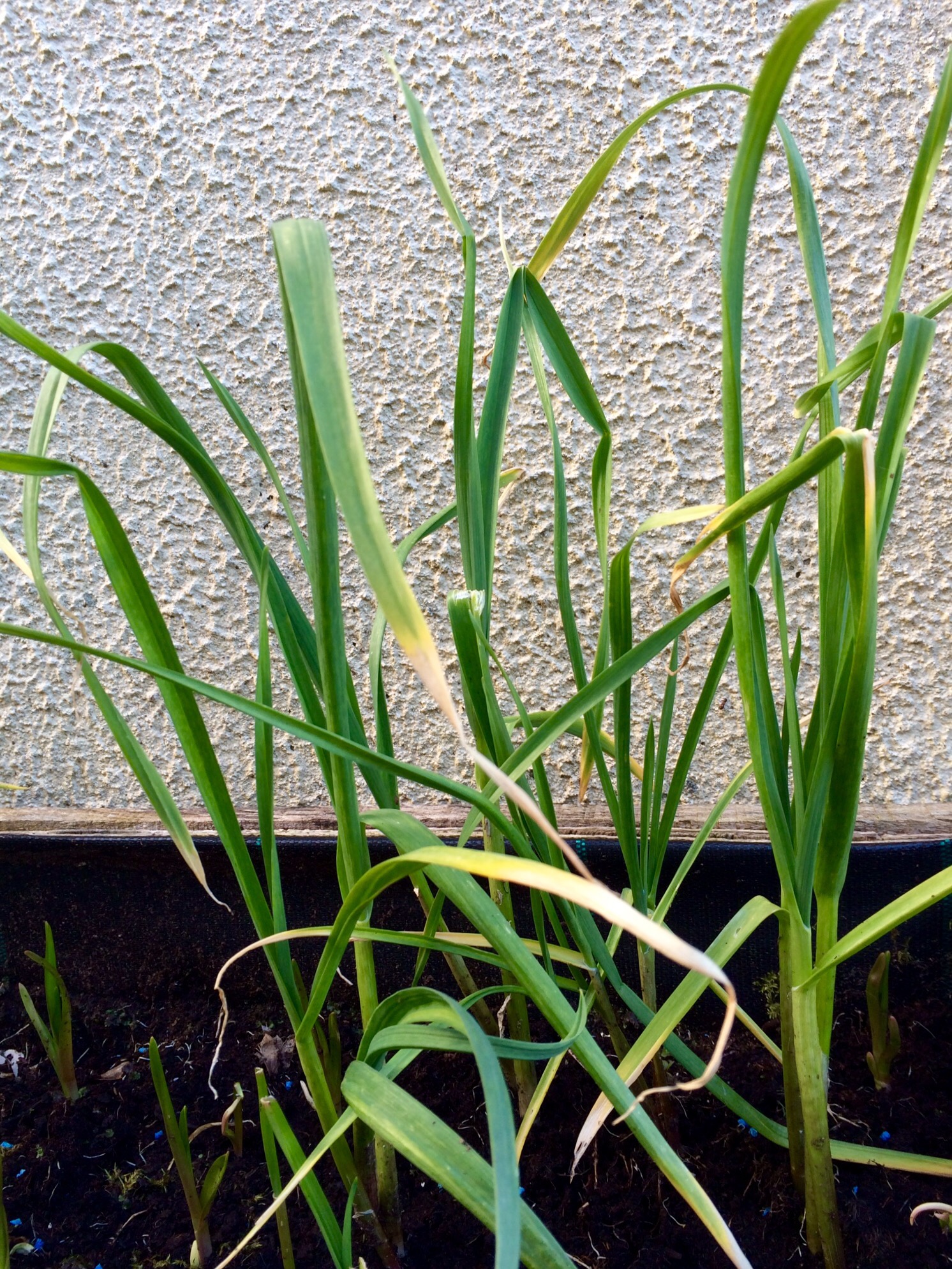 Something the slugs don’t eat: garlic. I really thought I’d gotten it all last year – I harvested about a kilo. Clearly, I missed these. Still: slug pellets because they are eating the hell out of the two native primrose I stuck in this planter (which aren’t doing much but getting eaten, at the moment).