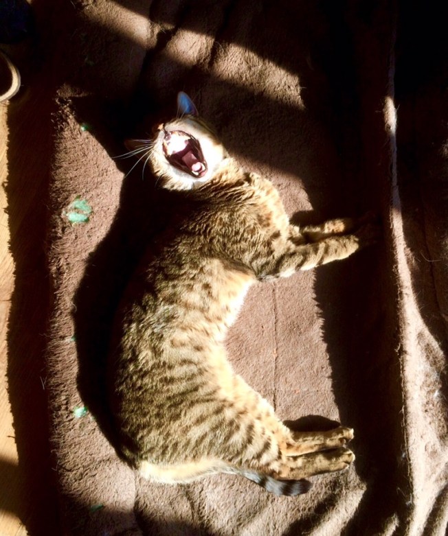 My favourite recent picture of Spottie – yawning in the sunshine!