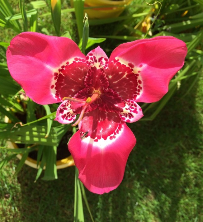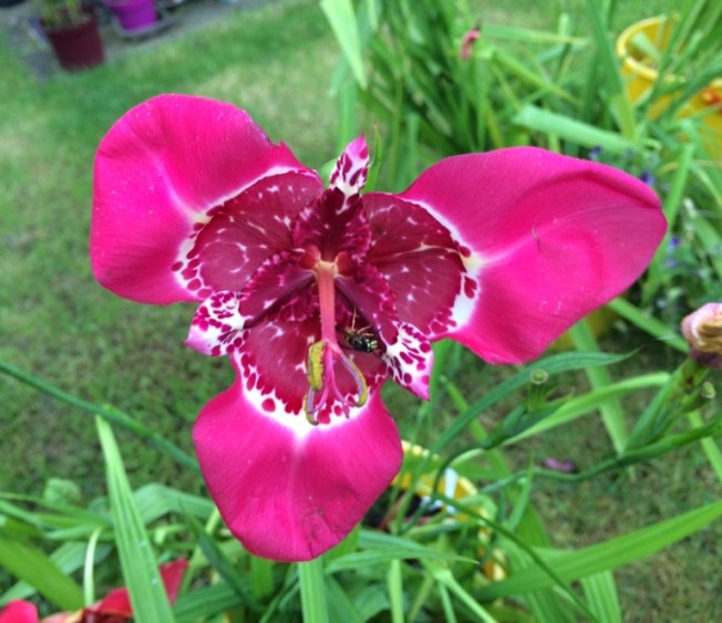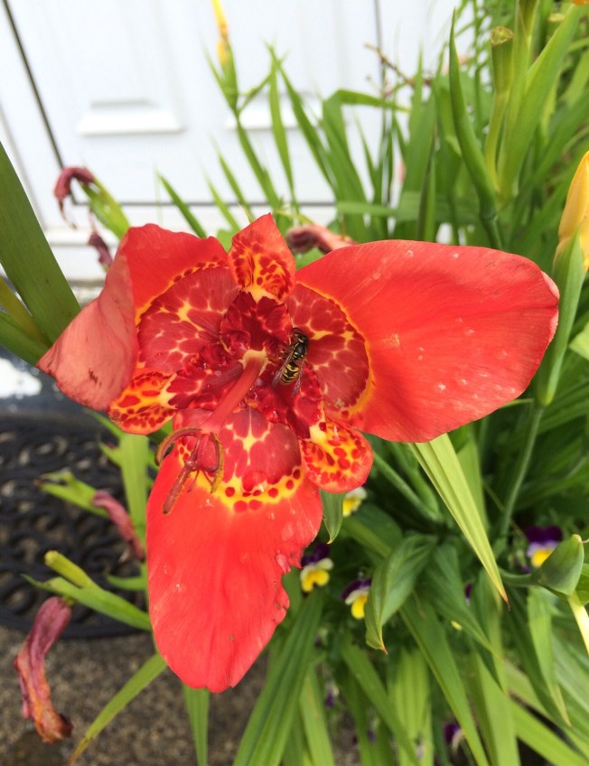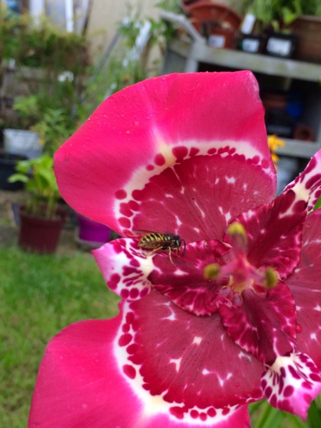 Ugh, I did mean to point out that at the base of the three small petals you might see three shiny spots – that seems to be what attracts the wasps.