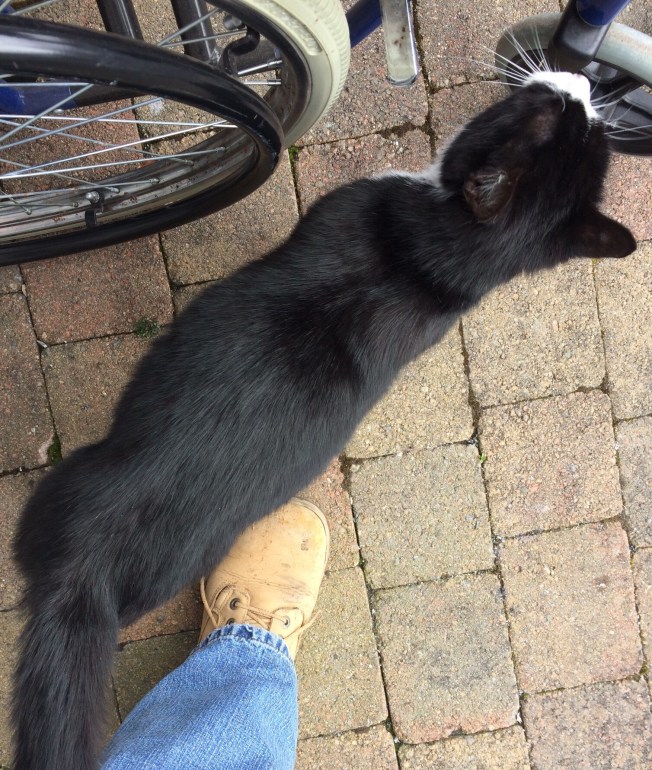 One for Ark – I rarely see grasshoppers here. This one is so tiny, that white thing is a dog hair. Poor thing was also missing one vital back leg. I ushered it into the grass, maybe it will have a chance there.