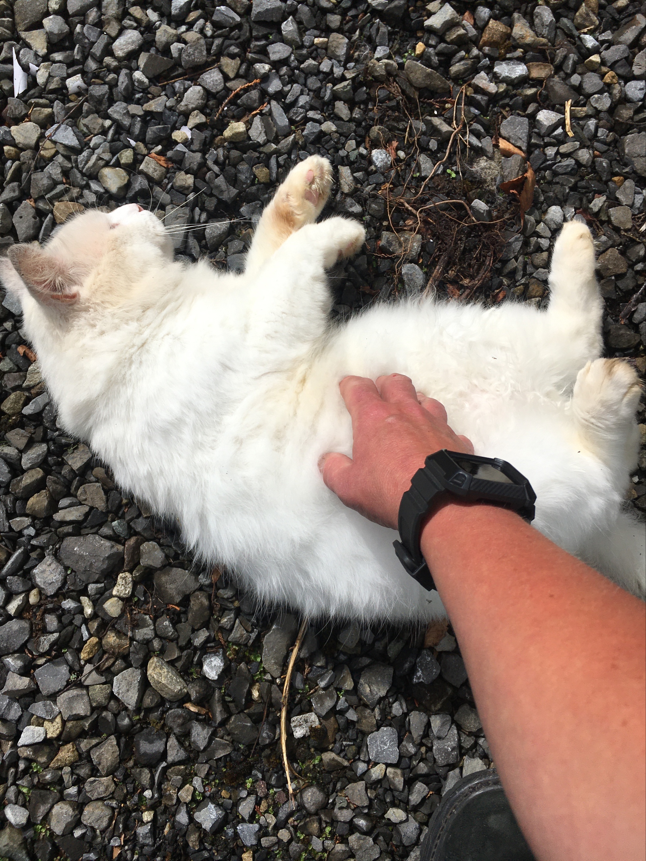 We both hated the idea of leaving him outside. But after the calamity and violence that happened between Lokii and Lumi when I tried to keep one of last year’s kittens, we knew we couldn’t just toss BG inside and hope for the best. Old man Lokii was not likely to want BigGuy anywhere near him. Also… the dog! What would BigGuy think of a massive dog in the house all the time? Was he scared of dogs? He should be, to have survived so long as a feral.
