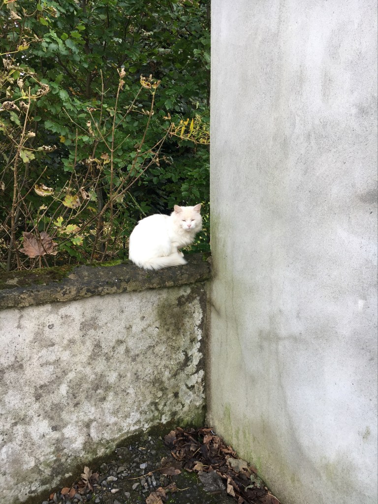 Mam was the winner! She had just put the sign up in our local hardware shop (the owners are good friends of all of us) when a woman stopped to chat. The woman eventually got around to remembering that she had seen a big white cat at the local school!