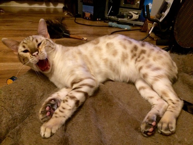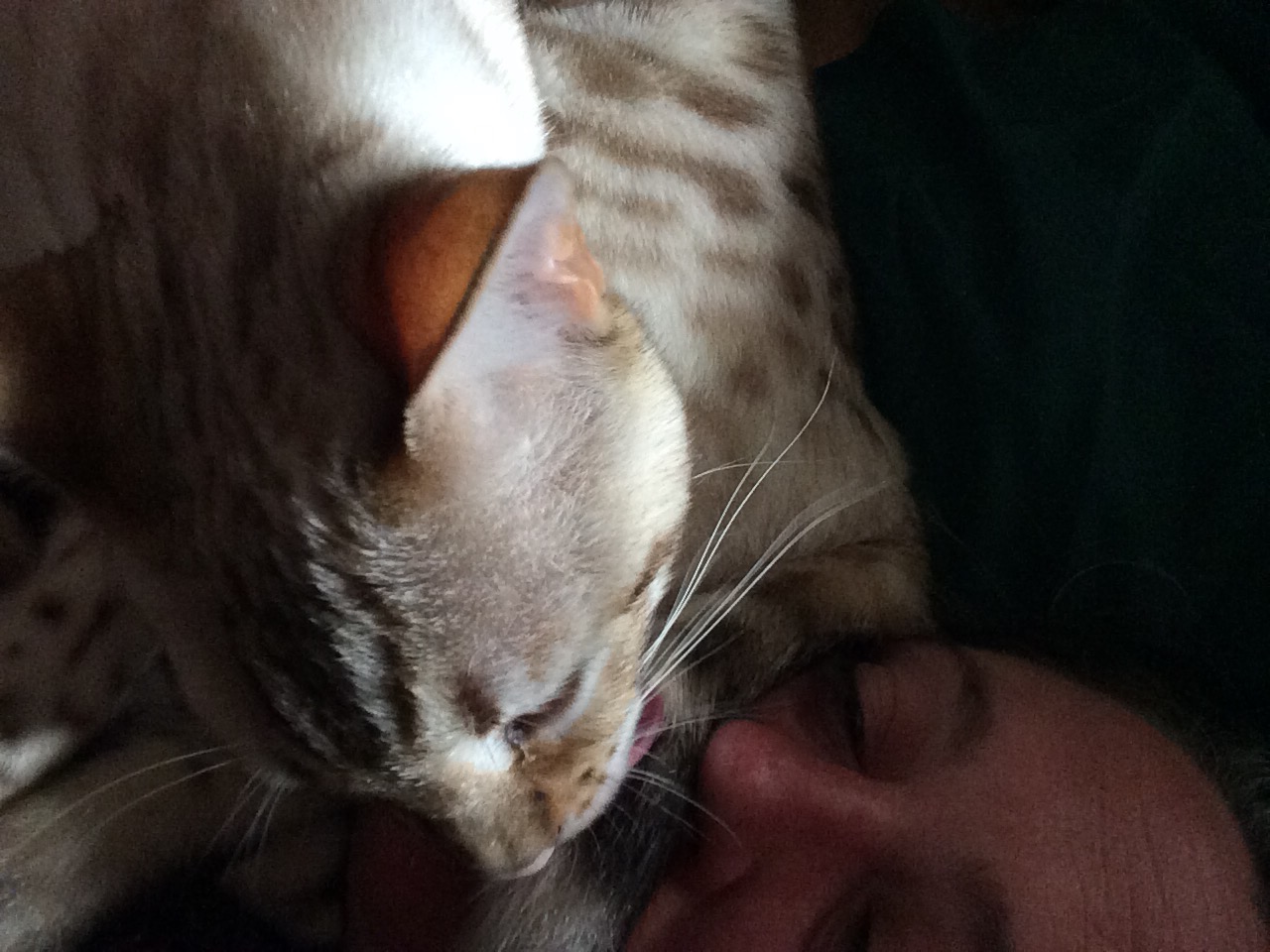 I took a bath today. Lumi came knocking at the door, as he always does. I’m well used to Bengals wanting to investigate a tub full of water with me in it after having Spot for so many years.