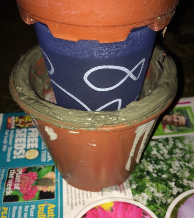 I chose two plastic plant pots that looked like they fit together enough to make a concrete pot between them.