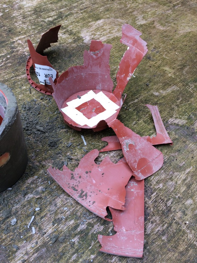 Finally, I dug out the inner pot and the corks. It broke. A lot. The top edge was very fragile, and the two different mixes of concrete did not become best friends.
