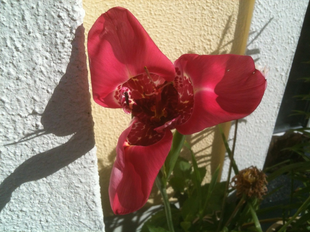 Took pictures of today’s tigridia blooms. Killed the caterpillars on my now three? four? year old purple sprouting broccoli plant.