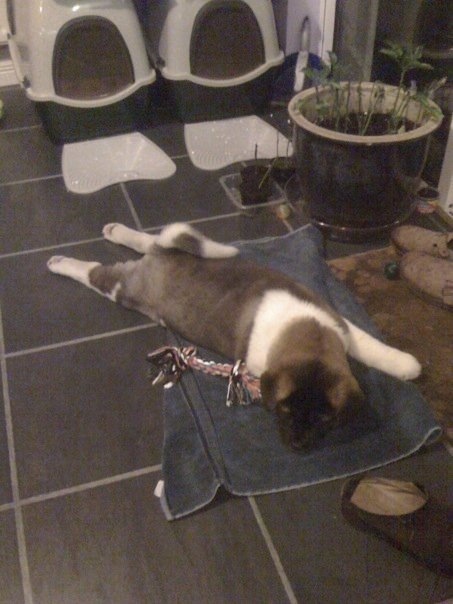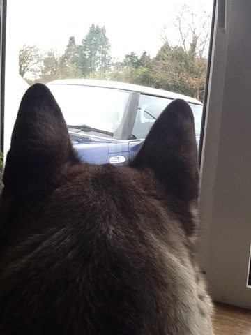 Them’s my legs. Just before this was taken, we had someone get out of their car to ask about her. We gave him a short lesson about the difference between American Akitas and Japanese Akitas. The easy answer is that if the dog’s face is black, it’s an American. If not, you have to register your dog on the dangerous breeds list in Ireland and walk her with a muzzle. I also told him the official name for her coat coloration is ‘pinto.’ cool, eh? I have an American dog named the Japanese word for cat with the markings of a horse. No wonder she’s a bit neurotic. You can tell she’s worried all the time just from this picture.
