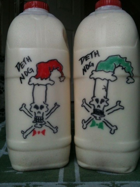 The eggnog, however, is a classic family concoction. I have my dad’s instructions for this brew, and it is POTENT! Our tradition is to write on the jug ‘death nog’, because one morning mom put it in her coffee instead of milk. Wheee! Work today is so much more fun than usual!