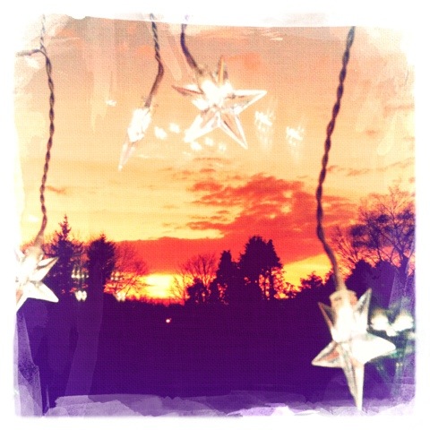 Oh! He gave me his old iPhone, and it came with the Hipstamatic application. I’ve not played with it much, but tonight we had a gorgeous sunset and I thought I might catch the Christmas tree with the sunset behind it on some groovy retro film. It didn’t work, but I got a couple good close up pics: