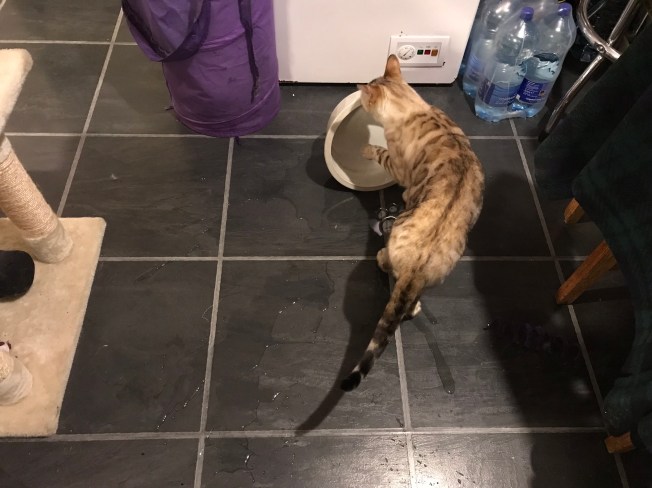 I took a bath today. Lumi came knocking at the door, as he always does. I’m well used to Bengals wanting to investigate a tub full of water with me in it after having Spot for so many years.