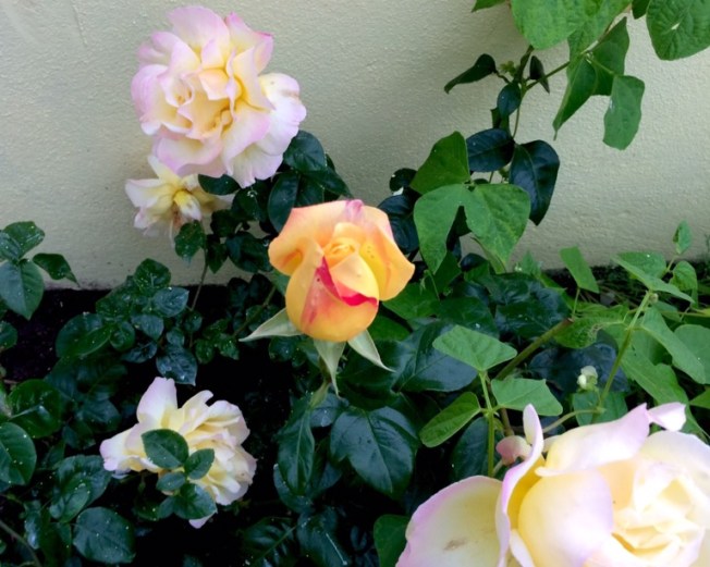 Clematis – top one is one of the new babies from last year. Just opened this morning! The others are growing up the weed-willow I have in the corner, and are the main reason why this grey willow still lives here. That and the birds love it. And I have a wisteria growing in there, too!