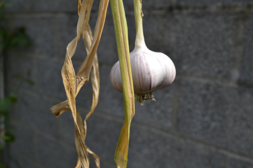 First garlic pulled. Now, this isn’t bought seed garlic, it’s whatever we got at Aldi or Tesco and it went off/started to grow, so I stuck it in the ground. Woot! Looks great.