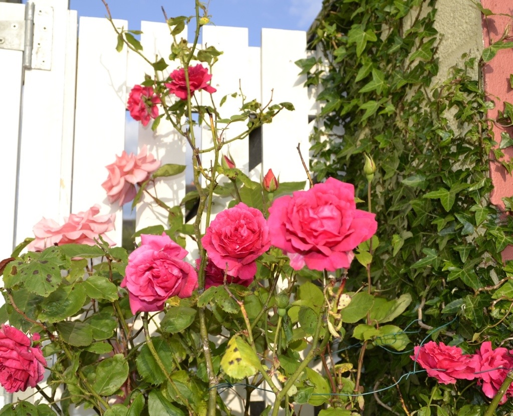 The blooms look great! There are two bushes out front, but they look like four as the colours change between bud and bloom. Salmon becomes soft pink, red becomes a light fuchsia.
